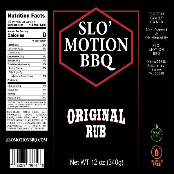 As with all Slo' Motion BBQ products, Original Barbecue Rub is handcrafted in small batches right here in Sussex, Wisconsin. We never use MSG, anti-caking agents, or the cheap fillers you'll find in grocery store rubs. Every jar is made with pride by "The Doctor of Smoke" Adam Gegare and his team, using recipes developed through years of BBQ competition and catering experience.